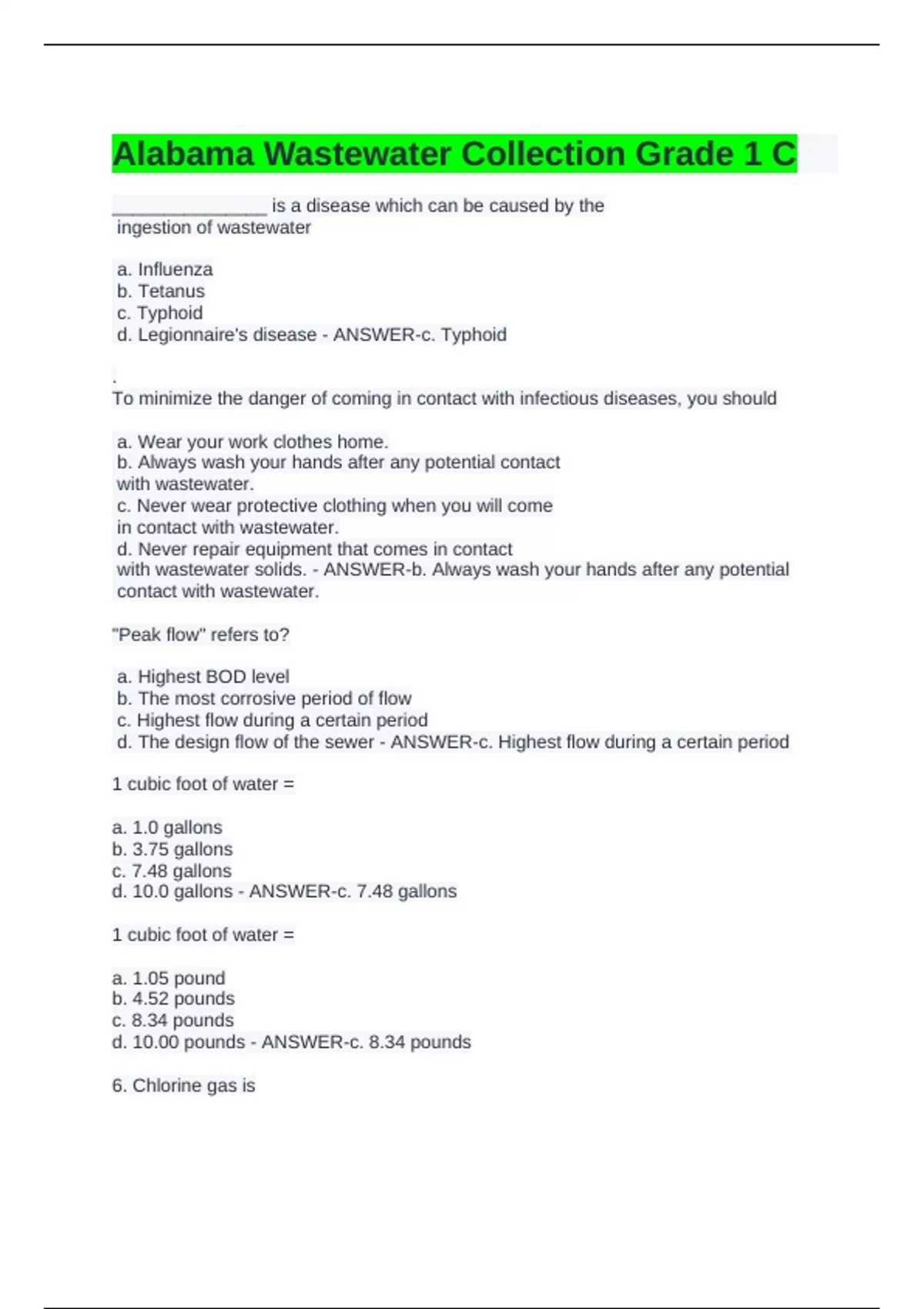 with wastewater solids. - ANSWER-b. Always wash your hands after any potential
