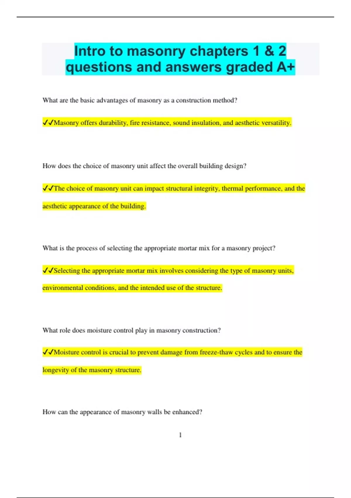 ✔✔Masonry offers durability, fire resistance, sound insulation, and aesthetic versatility.