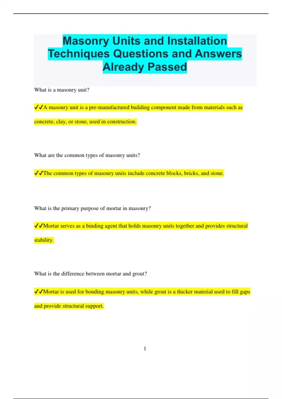 ✔✔Mortar serves as a binding agent that holds masonry units together and provides structural