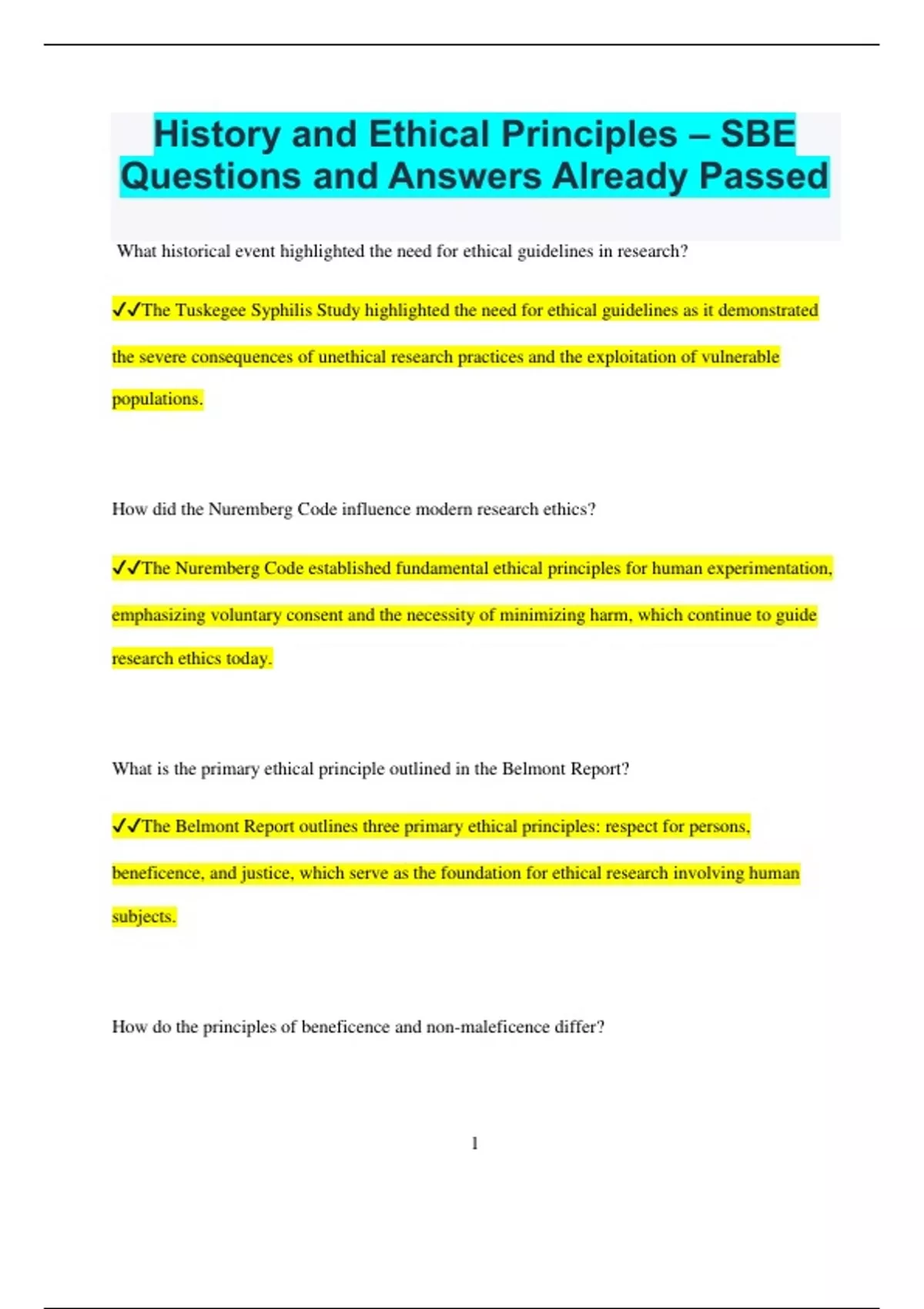 ✔✔The Belmont Report outlines three primary ethical principles: respect for persons,