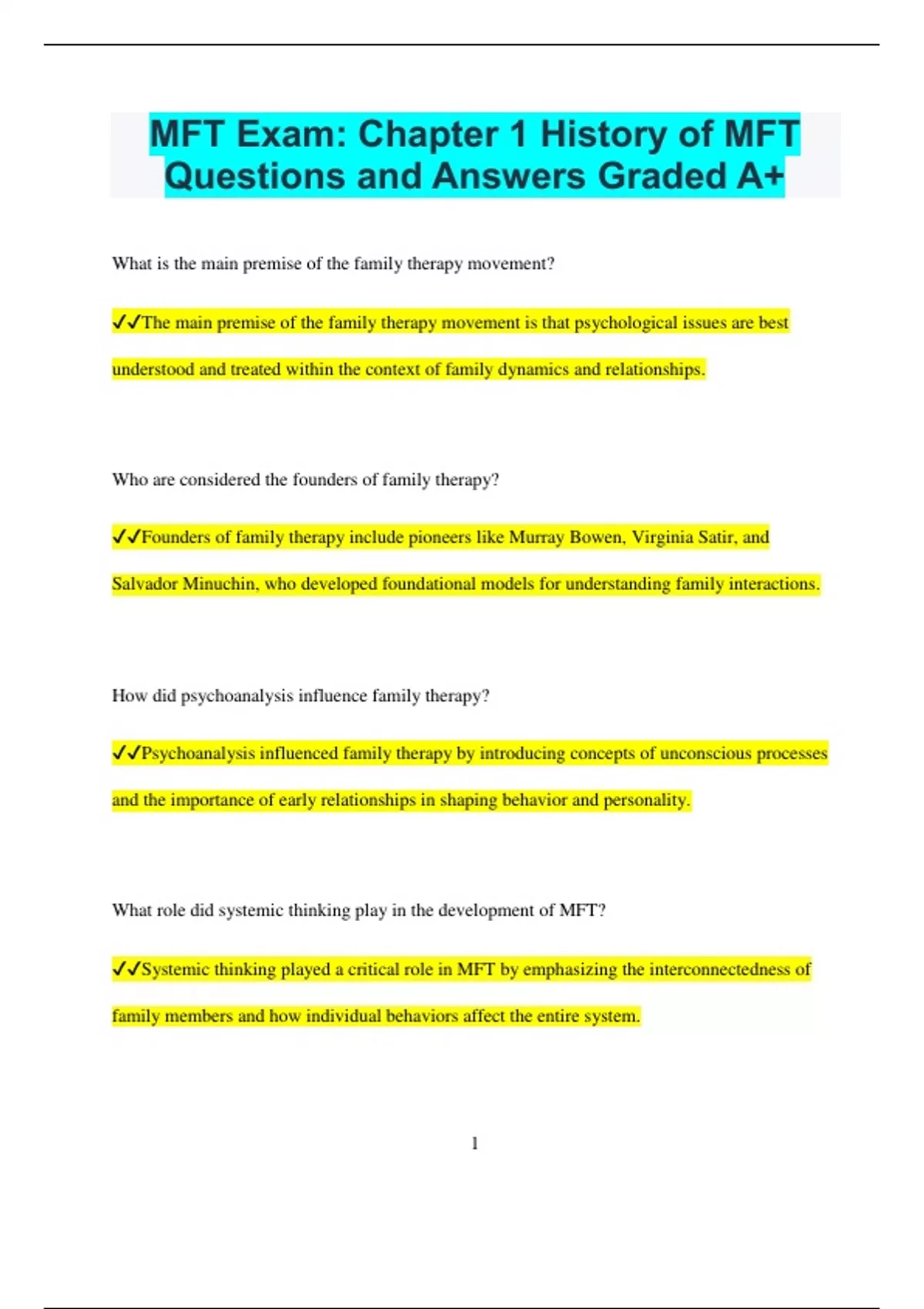 MFT Exam: Chapter 1 History of MFT Questions and Answers Graded A+