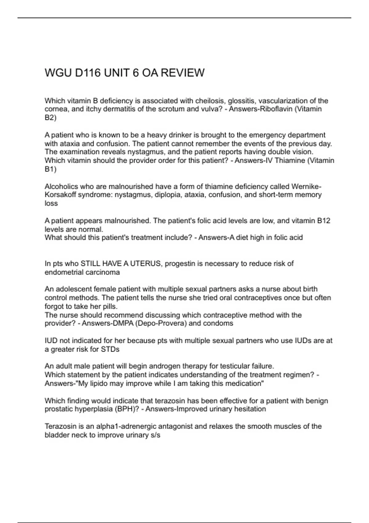 WGU D116 UNIT 6 OA REVIEW