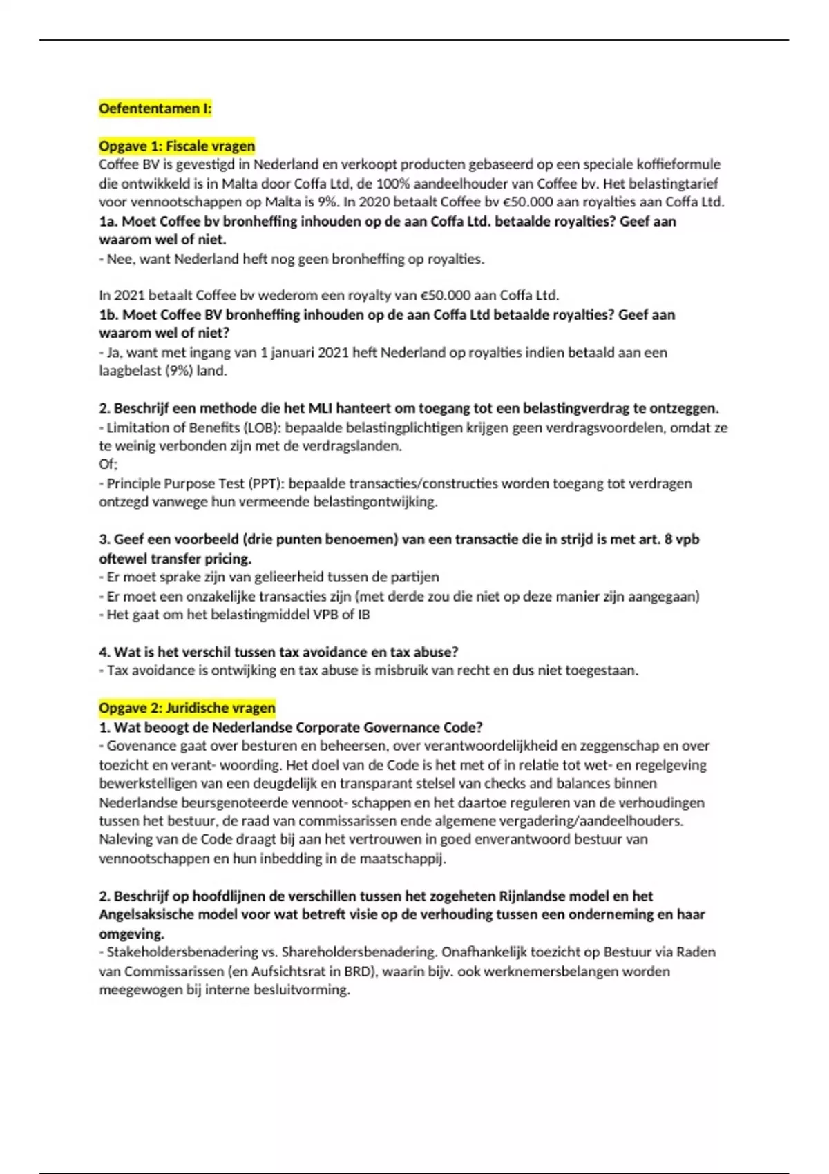 voor vennootschappen op Malta is 9%. In 2020 betaalt Coffee bv €50.000 aan royalties aan Coffa Ltd.