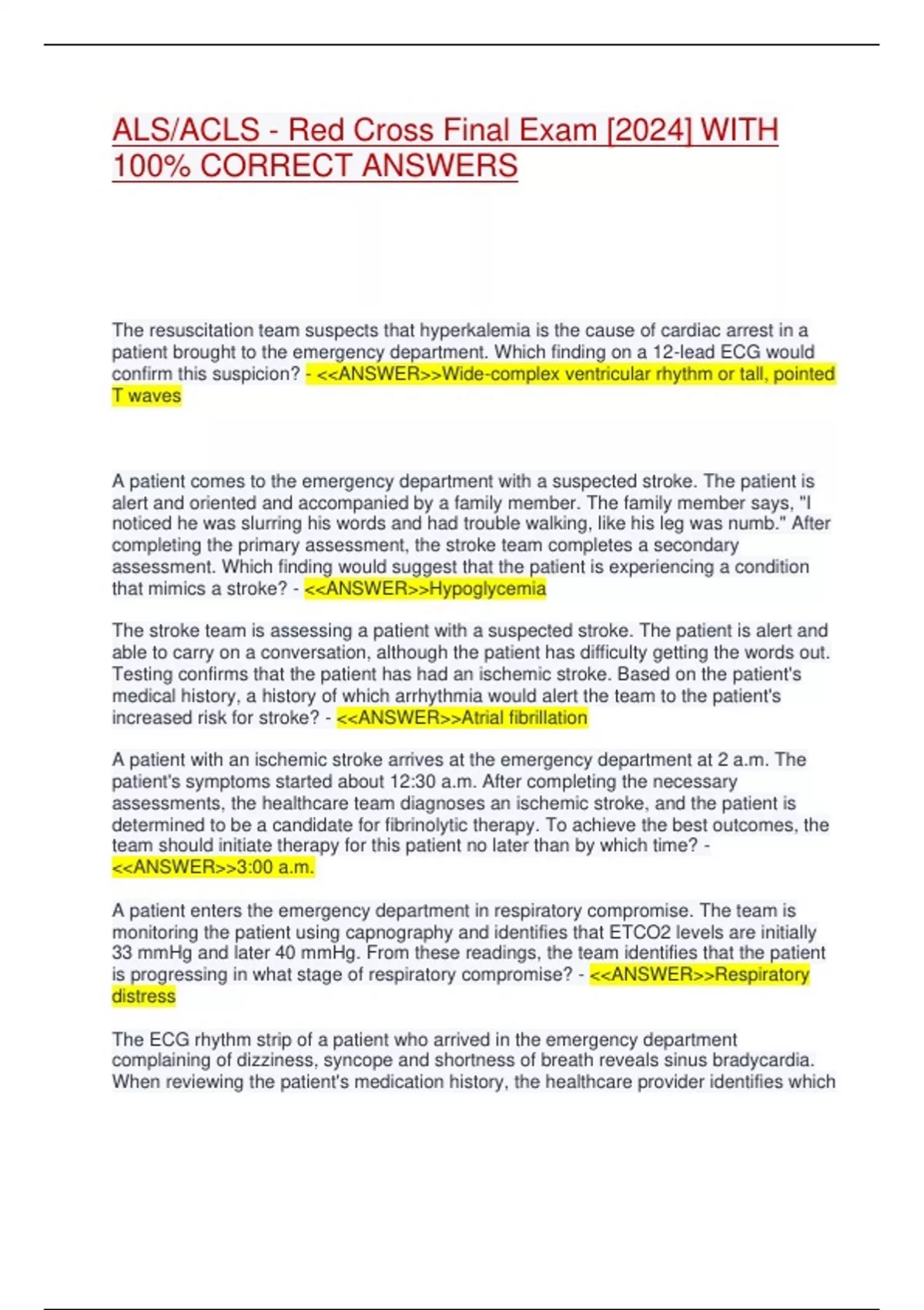 ALS/ACLS - Red Cross Final Exam [2024] WITH