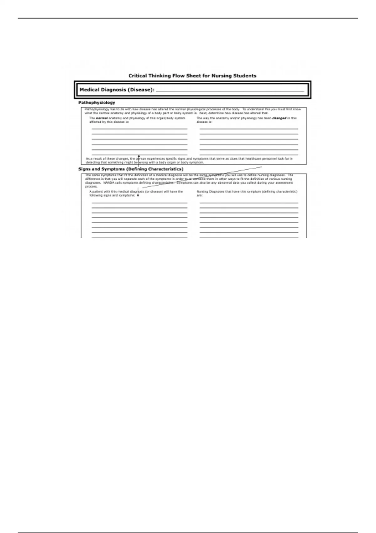 A patient with this medical diagnosis (or disease) will have the Nursing Diagnoses that have this symptom (defining characteristic)