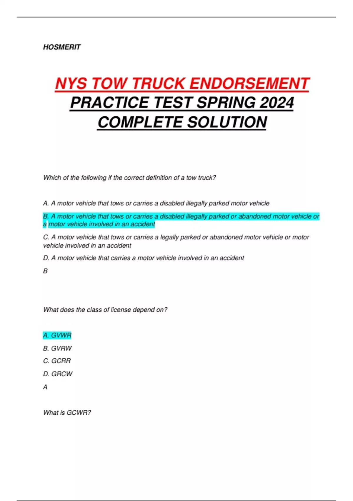 NYS TOW TRUCK ENDORSEMENT