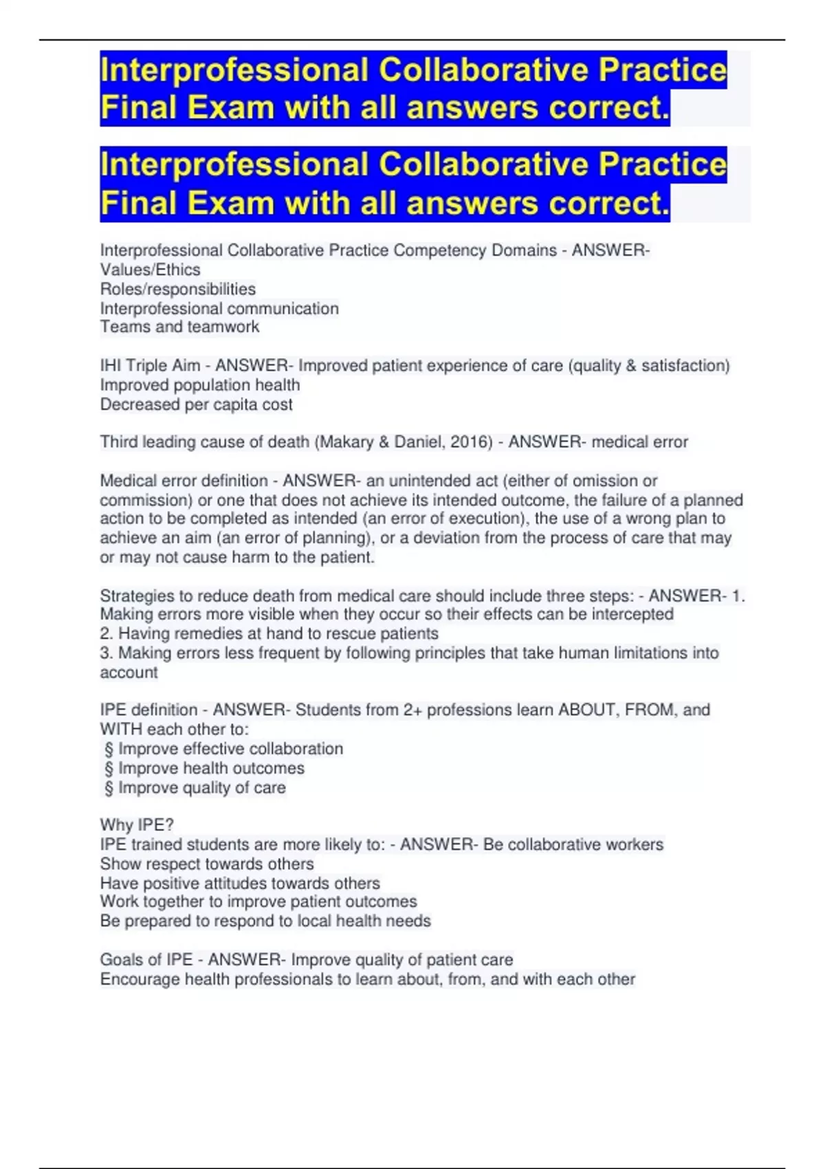 IPE trained students are more likely to: - ANSWER- Be collaborative workers