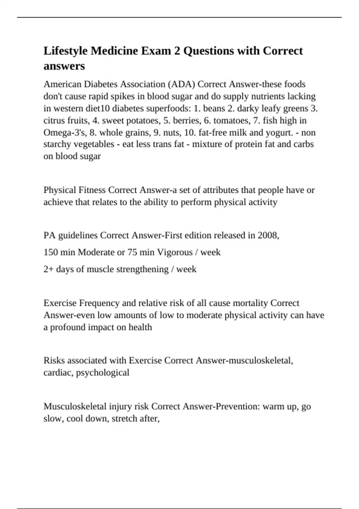 Lifestyle Medicine Exam 2 Questions with Correct