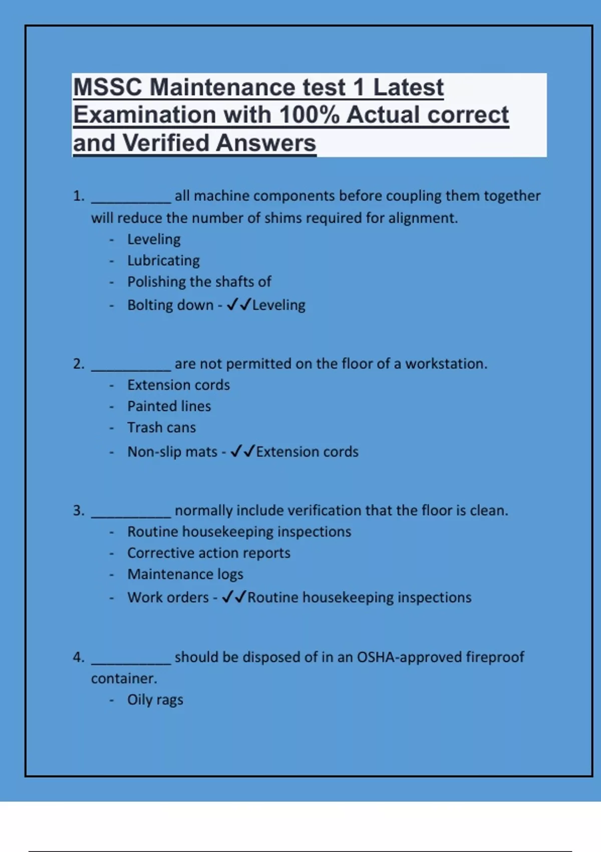 - Clean and sanitize - ✔✔Visually inspect