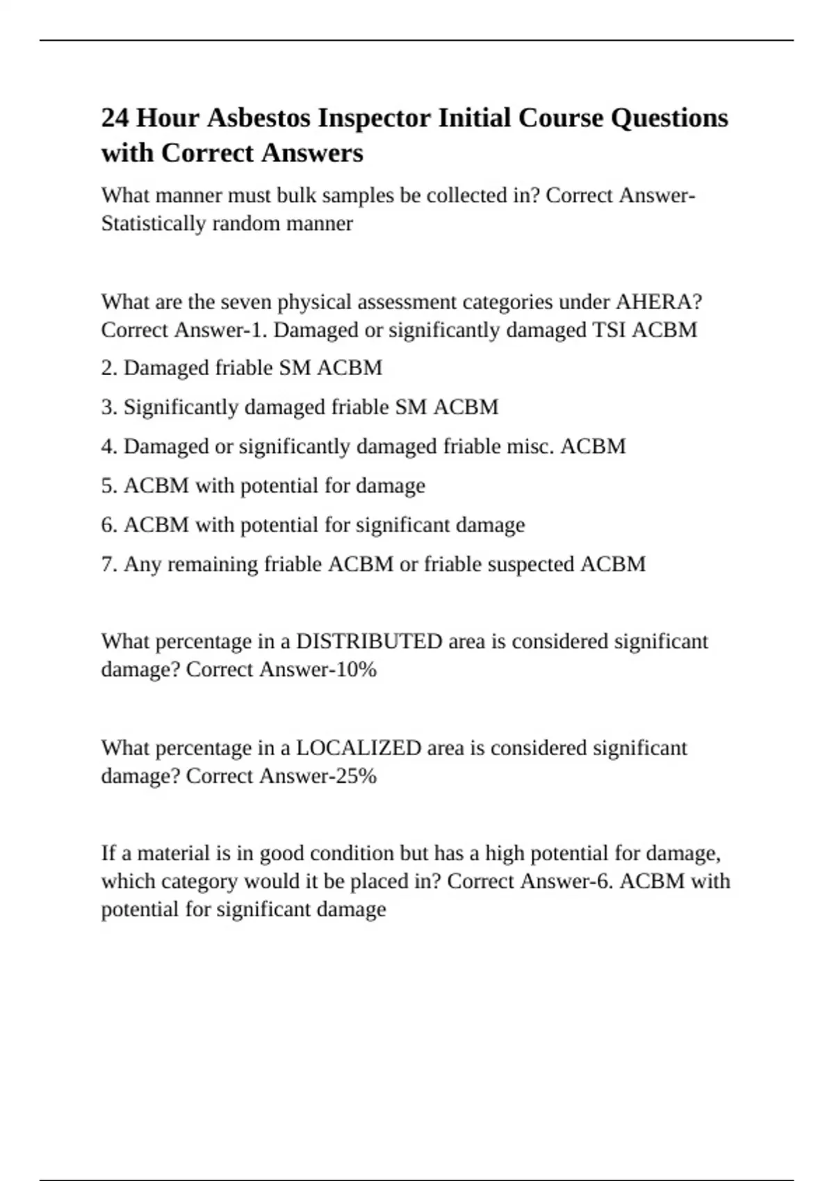 Correct Answer-1. Damaged or significantly damaged TSI ACBM