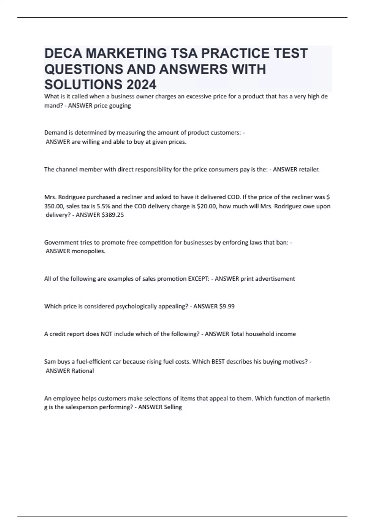 mand? - ANSWER price gouging