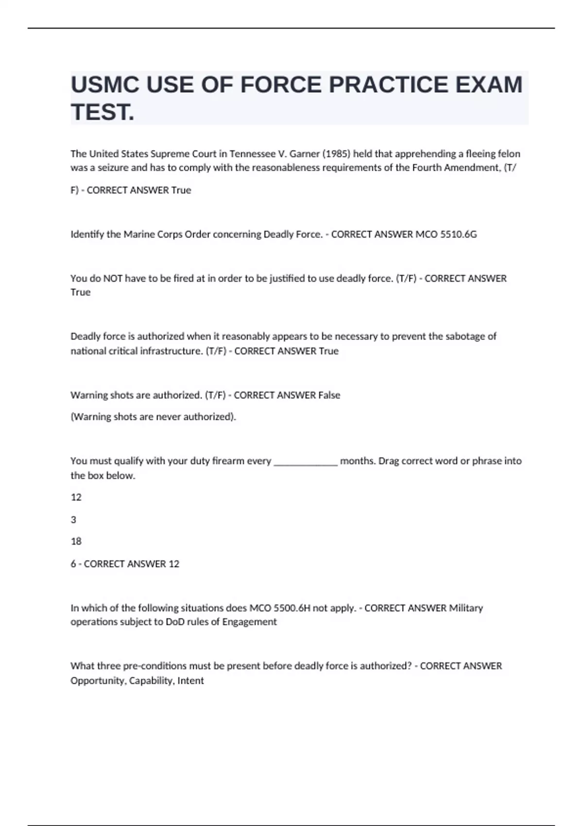 Identify the Marine Corps Order concerning Deadly Force. - CORRECT ANSWER MCO 5510.6G