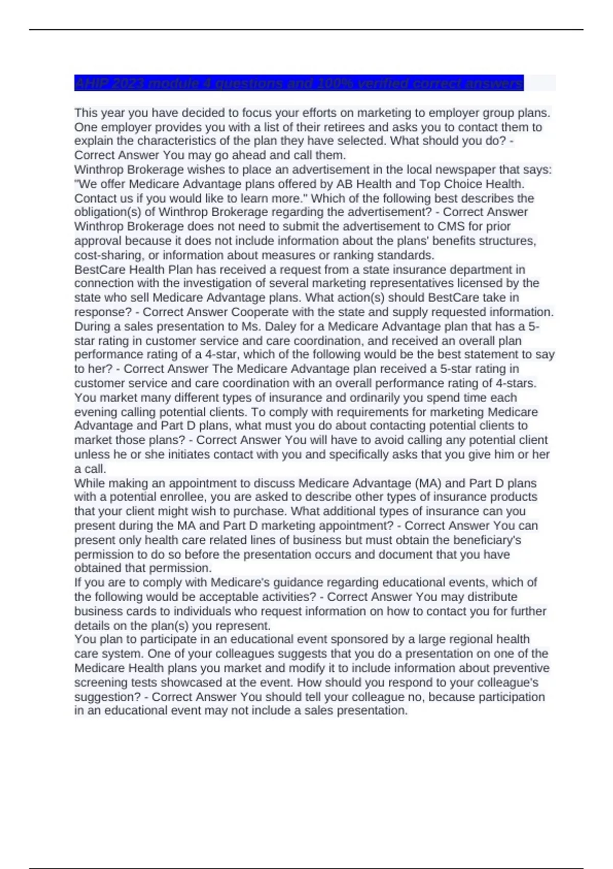 to her? - Correct Answer The Medicare Advantage plan received a 5-star rating in
