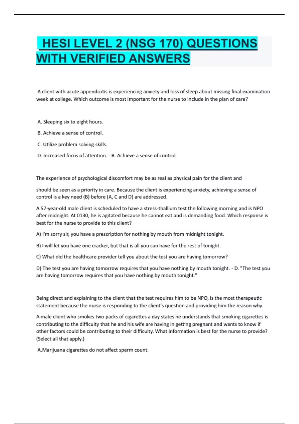 NHESI LEVEL 2 (NSG 170) QUESTIONS