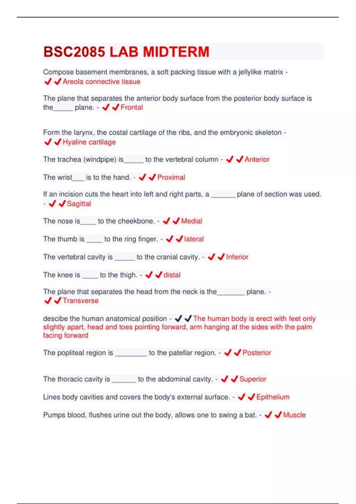 BSC2085 LAB MIDTERM QUESTIONS & ANSWERS SOLVED 100% CORRECT!!