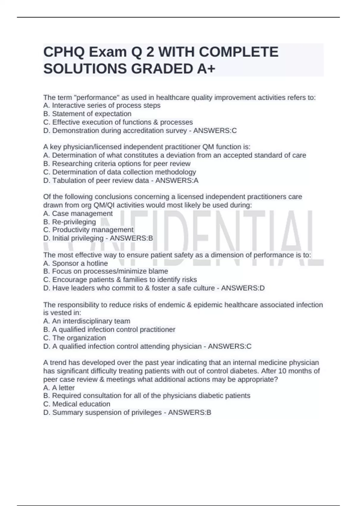 CPHQ Exam Q 2 WITH COMPLETE