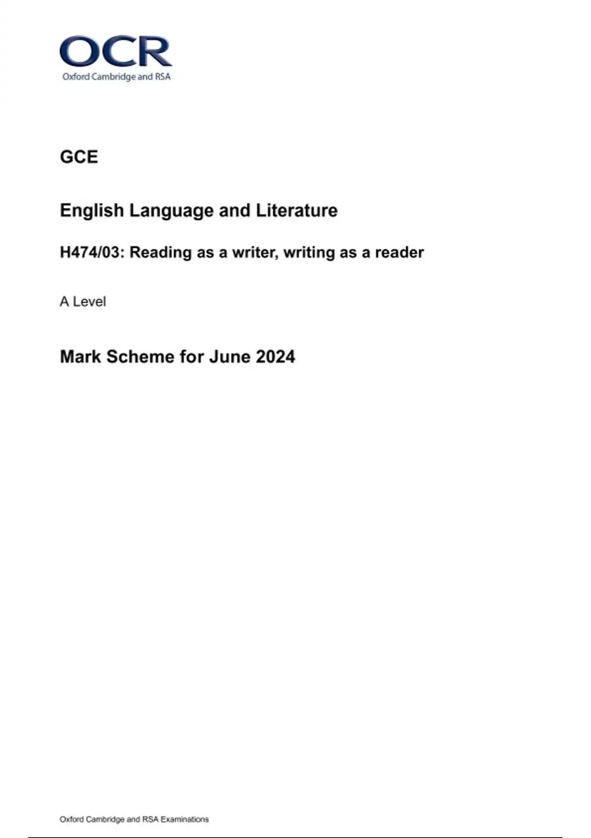 OCR A Level English Language and Literature (EMC)Paper 3 JUNE 2024 MARK SCHEME