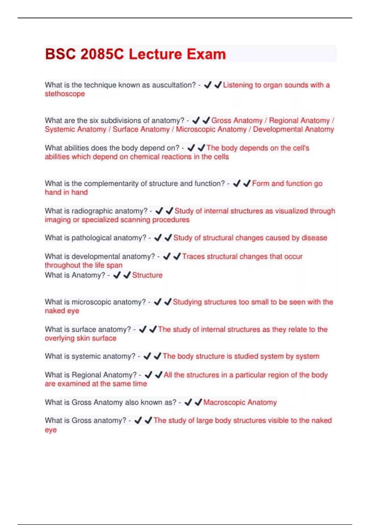 BSC 2085C Lecture Exam Questions And Answers Rated 100% Correct!!