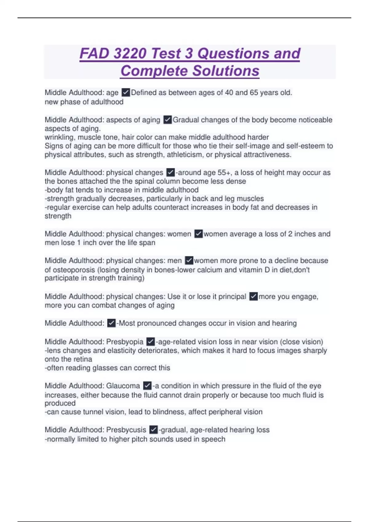 Middle Adulthood: ✅-Most pronounced changes occur in vision and hearing