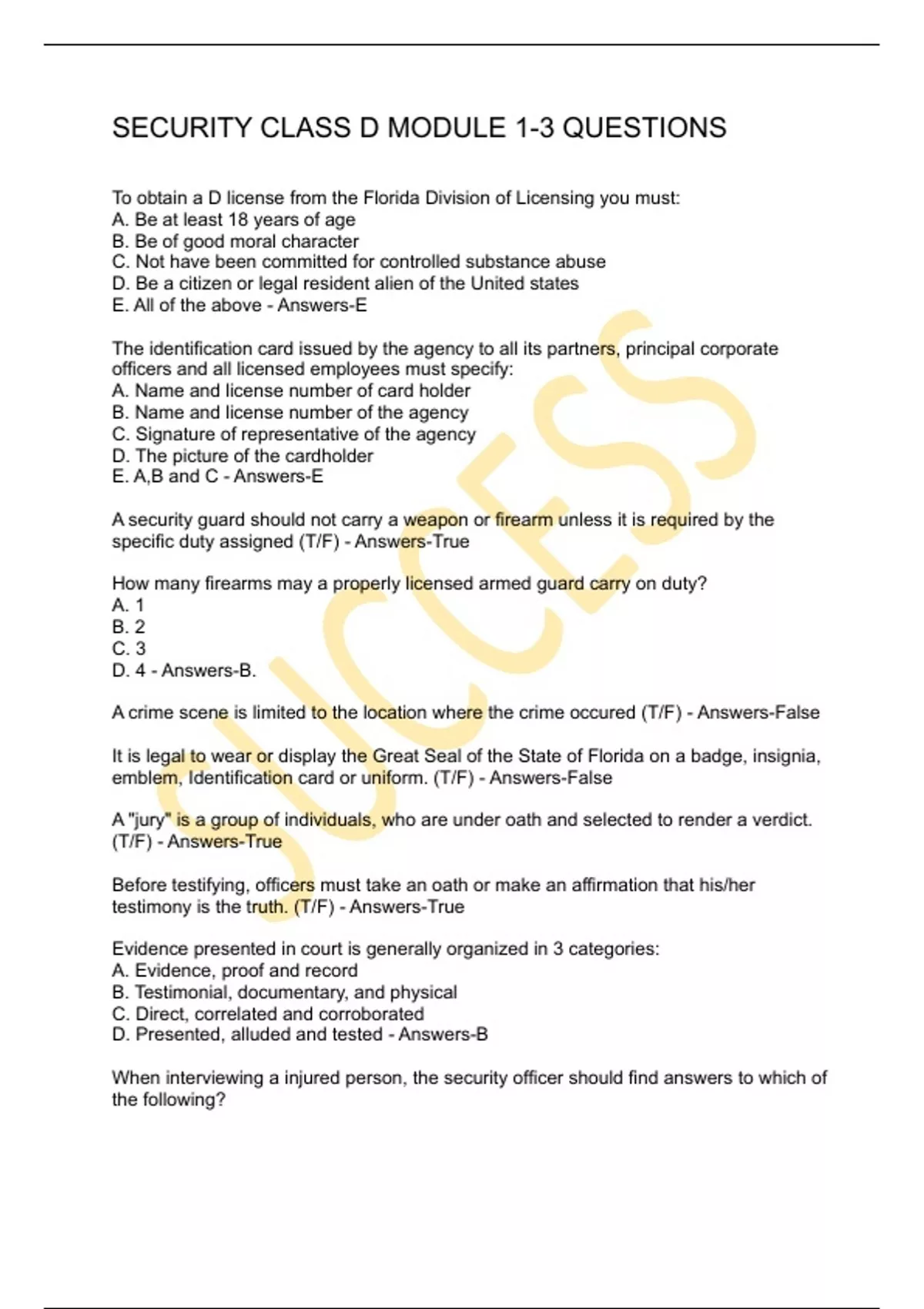 SECURITY CLASS D MODULE 1-3 QUESTIONS