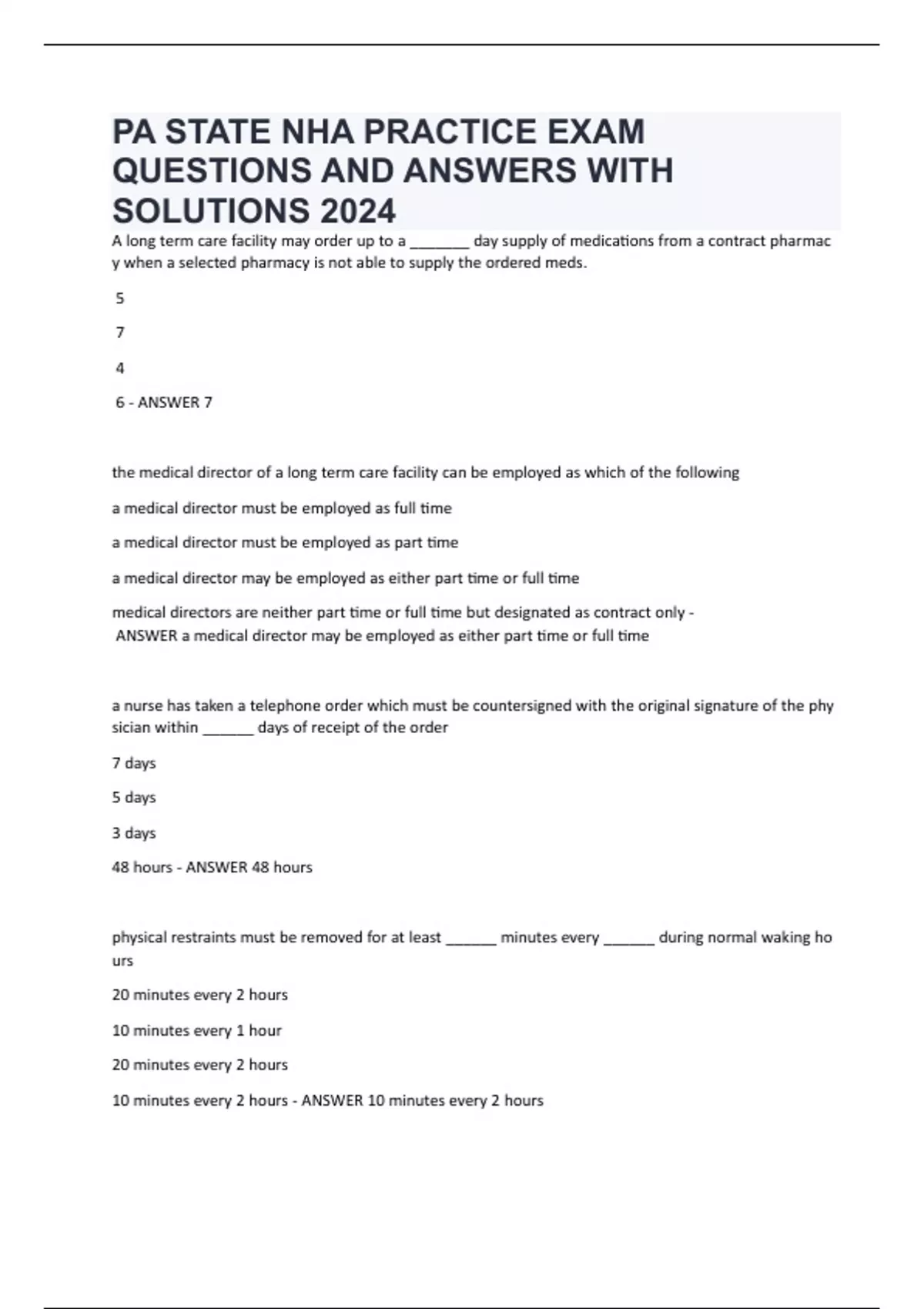 the medical director of a long term care facility can be employed as which of the following