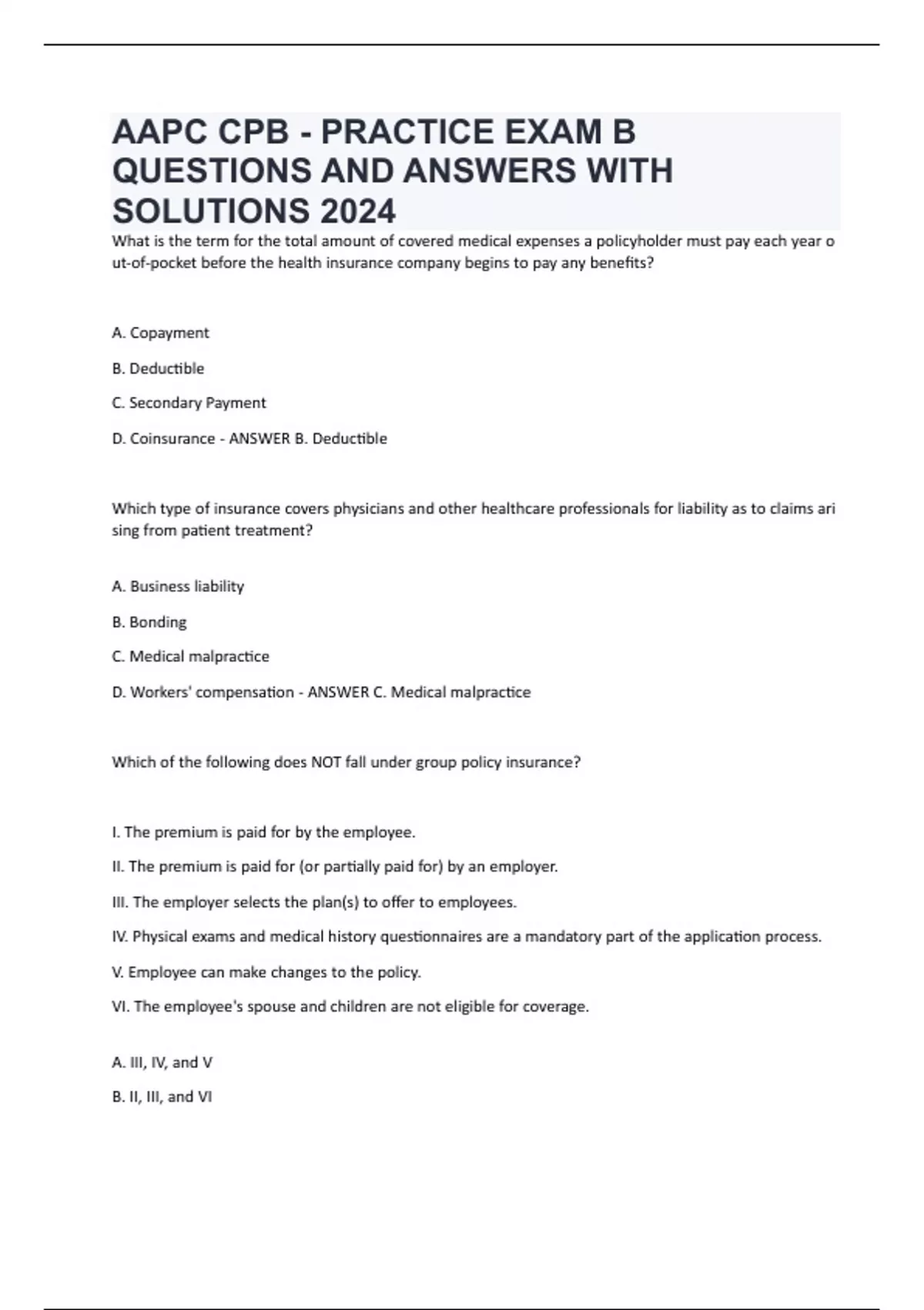 D. Coinsurance - ANSWER B. Deductible
