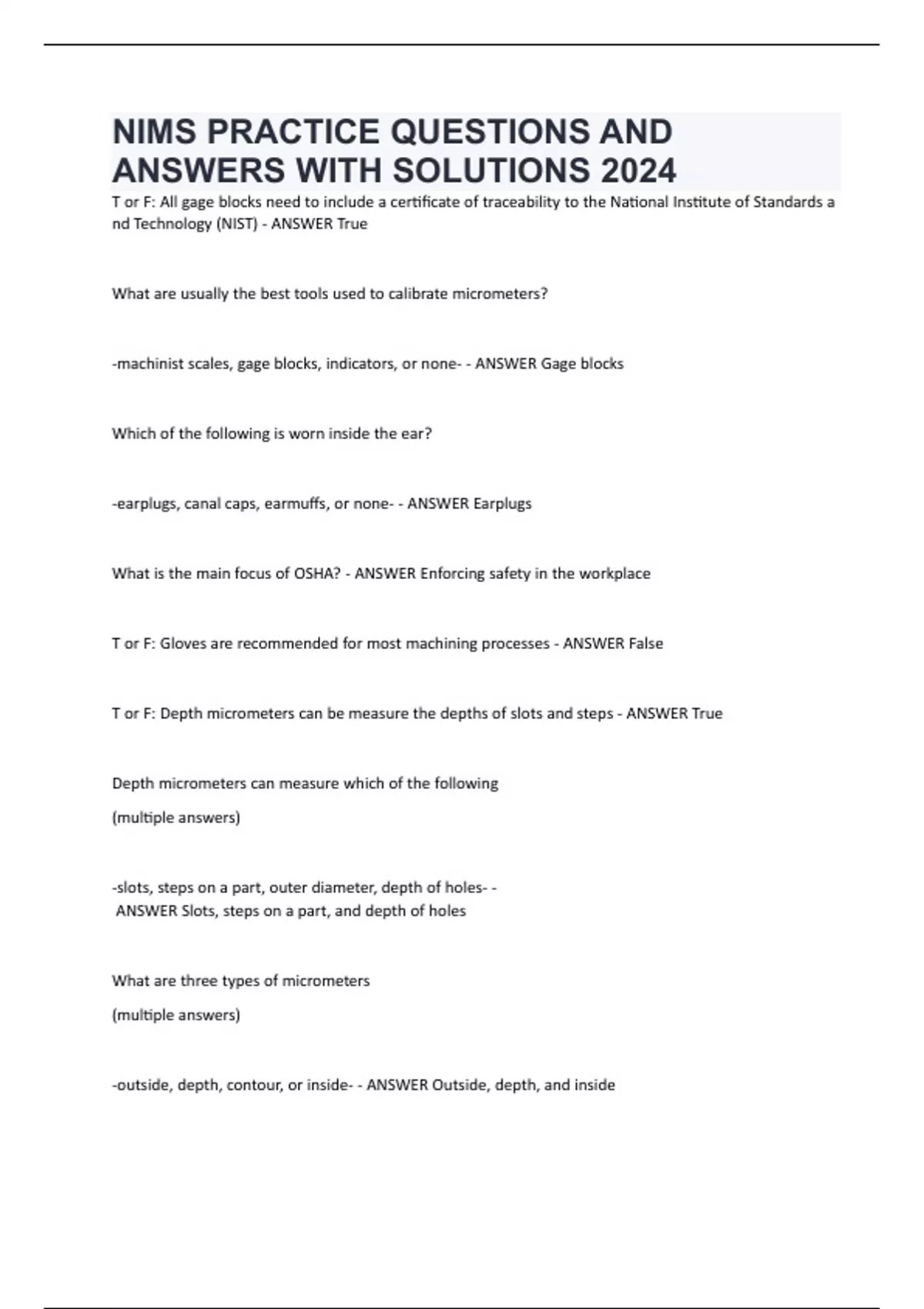 T or F: All gage blocks need to include a certificate of traceability to the National Institute of Standards a