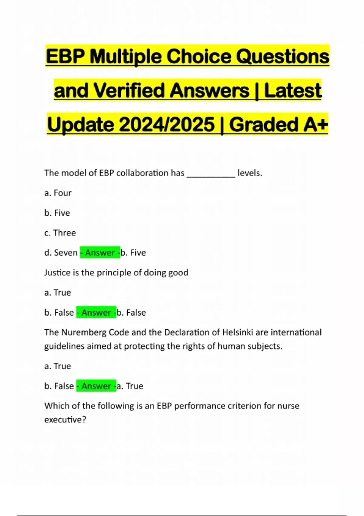 EBP Multiple Choice Questions and Verified Answers | Latest Update 2024/2025 | Graded A+