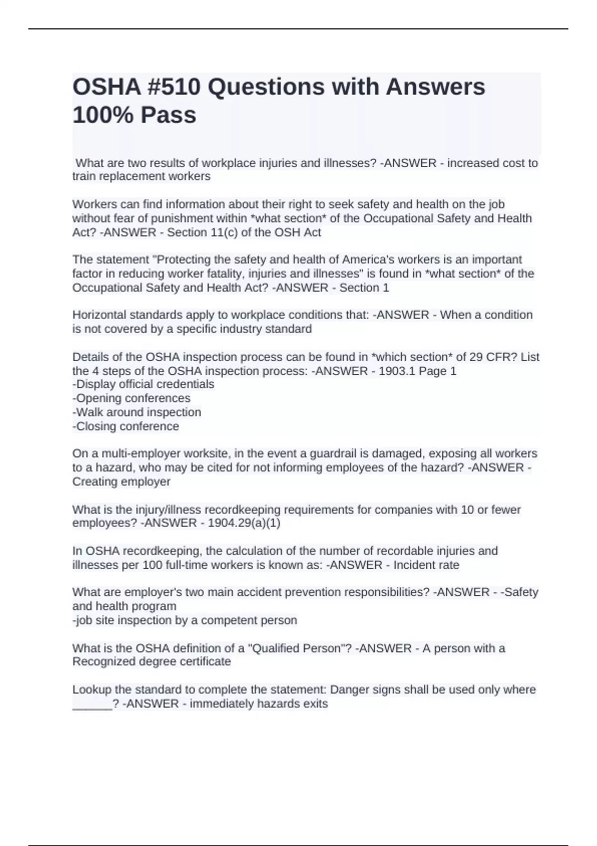 OSHA #510 Questions with Answers 100% Pass