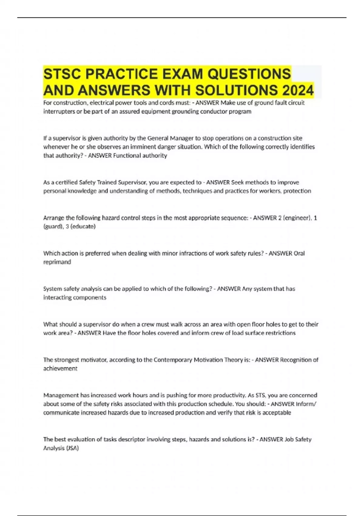 stsc practice exam questions and answers with solu