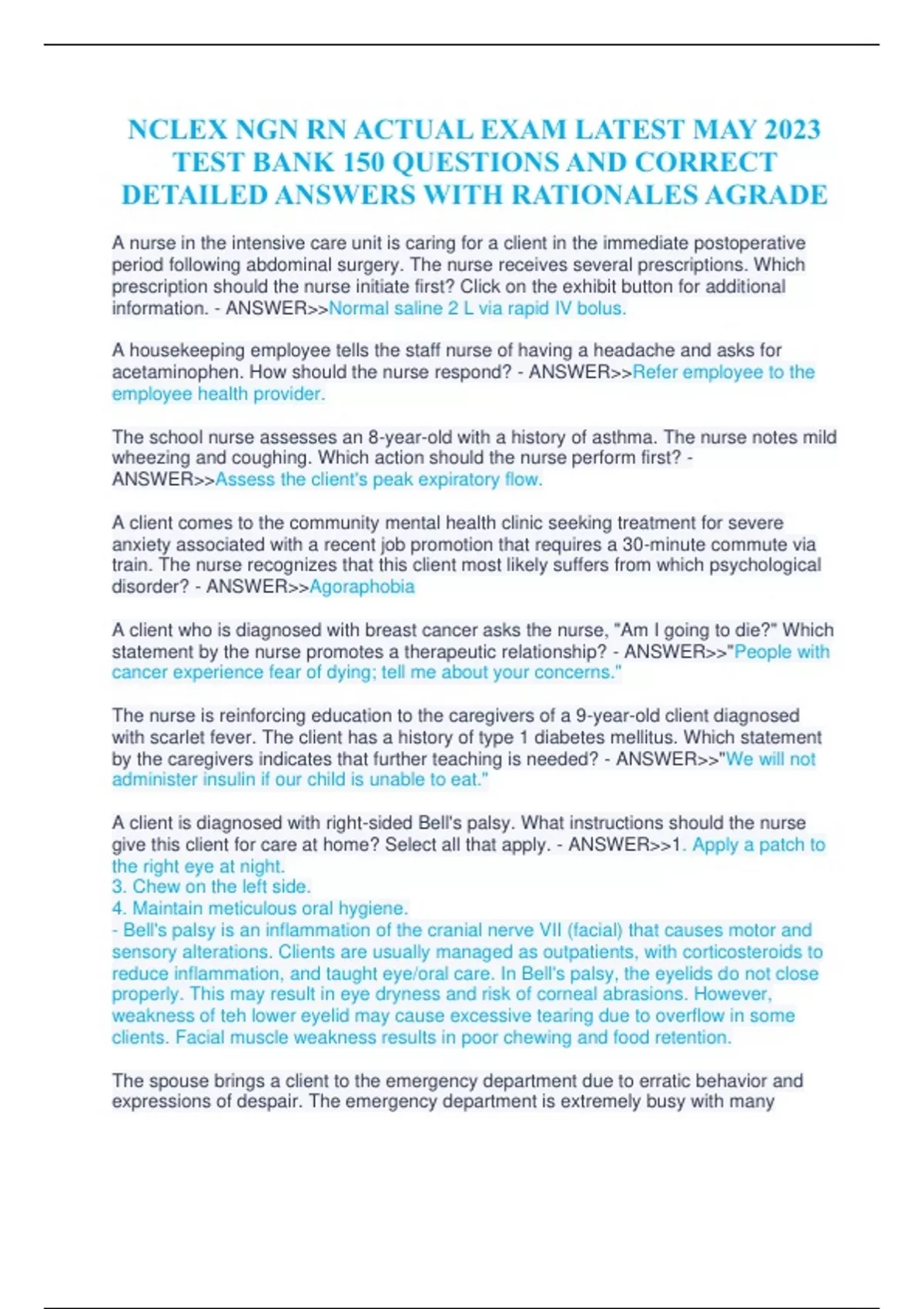 NCLEX NGN RN ACTUAL EXAM LATEST MAY 2023