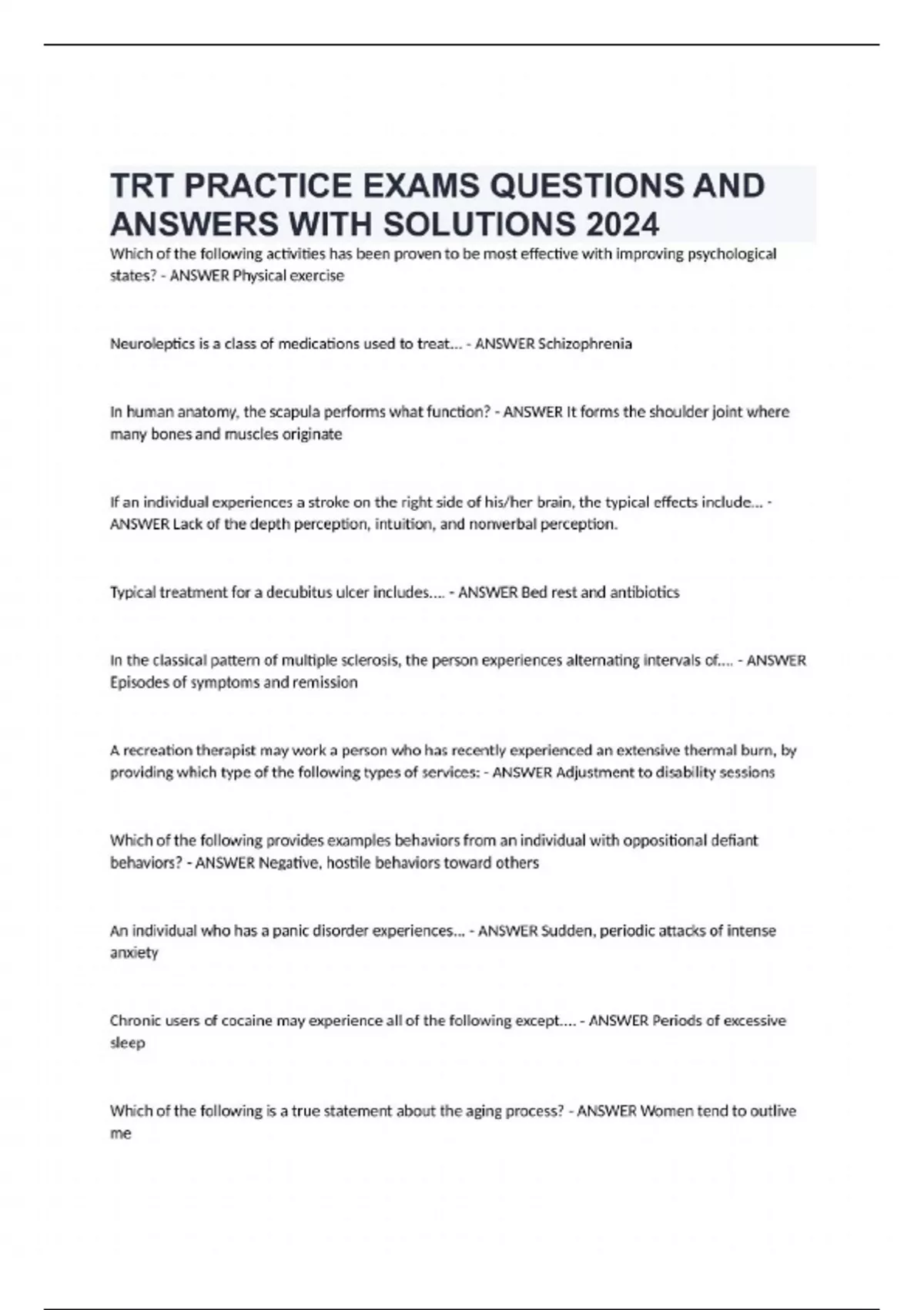 TRT PRACTICE EXAMS QUESTIONS AND ANSWERS WITH SOLUTIONS 2024