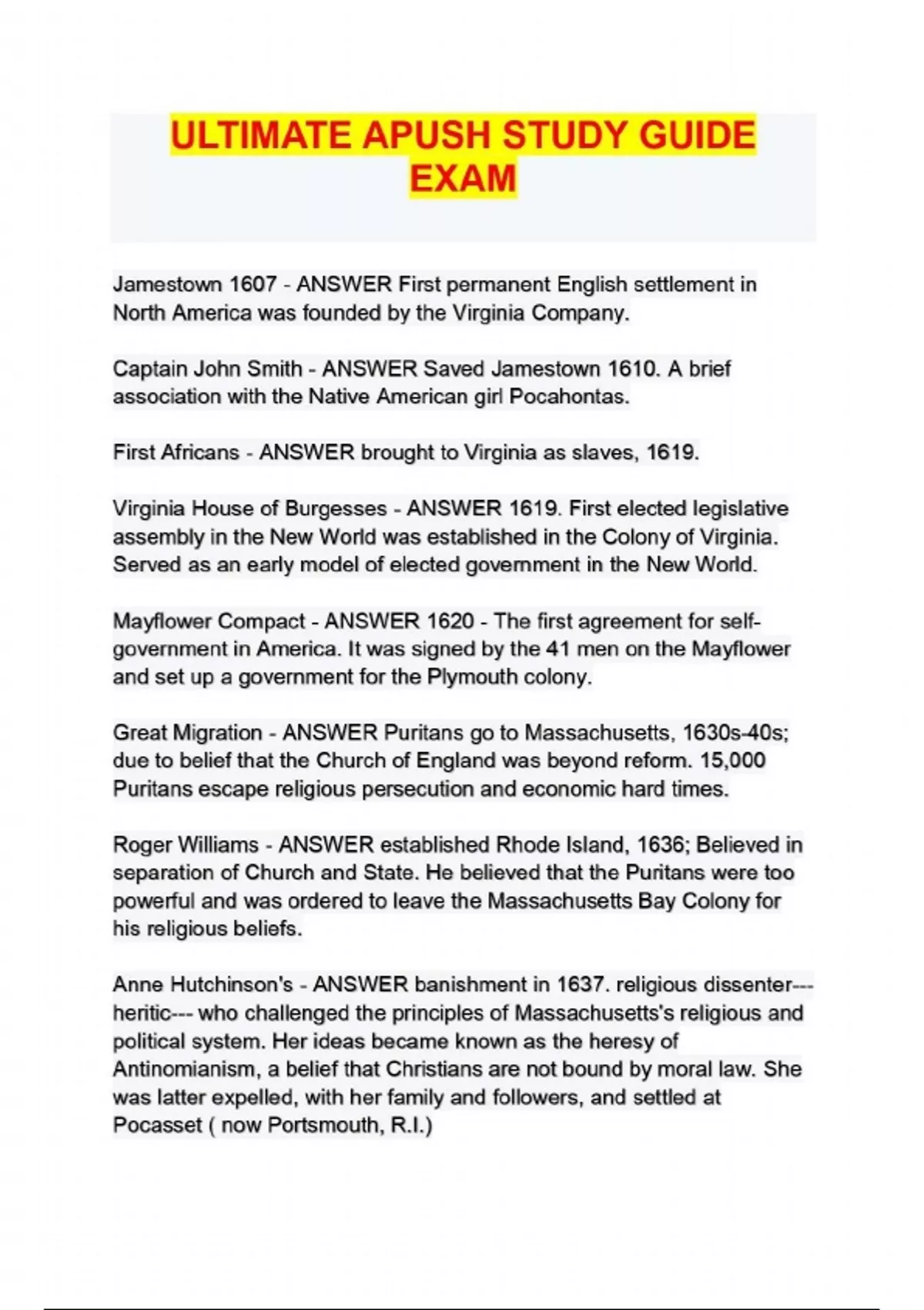 ULTIMATE APUSH STUDY GUIDE EXAM 2024/2025