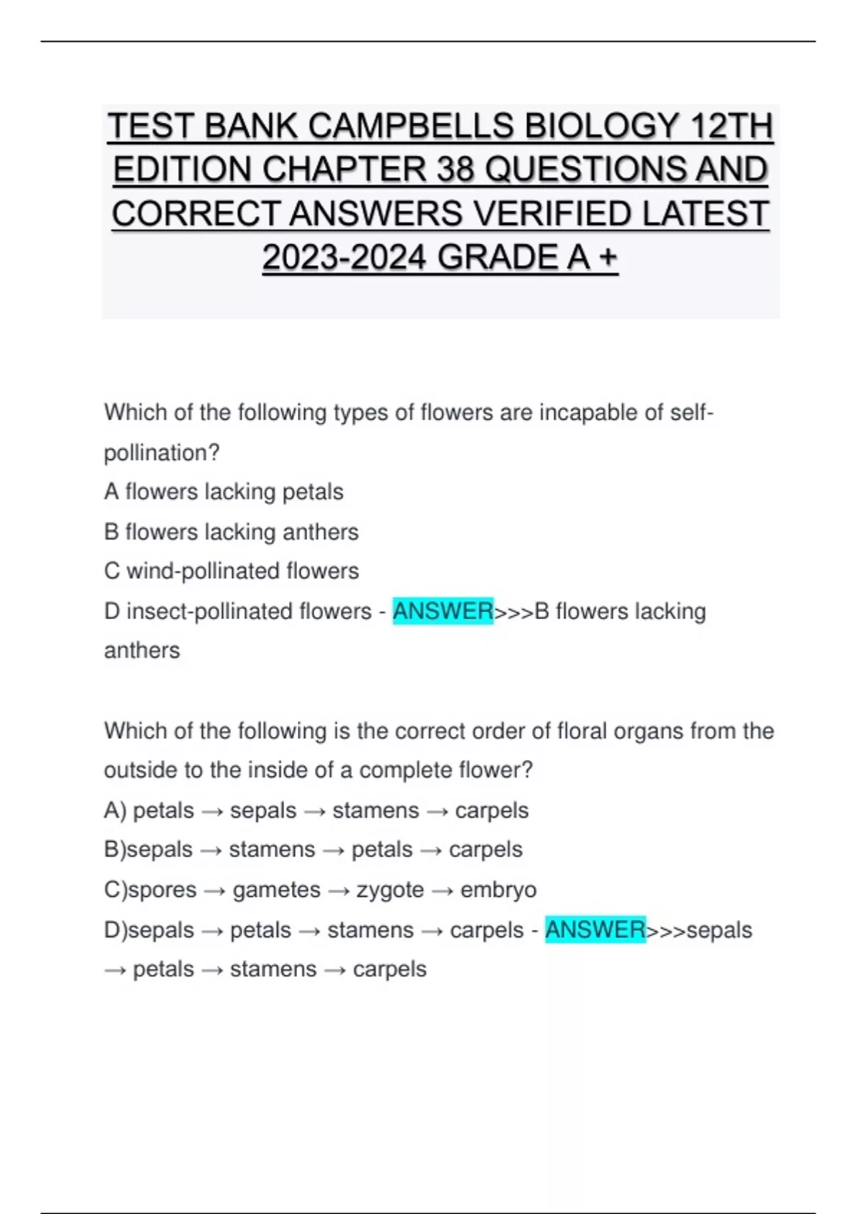 TEST BANK CAMPBELLS BIOLOGY 12TH