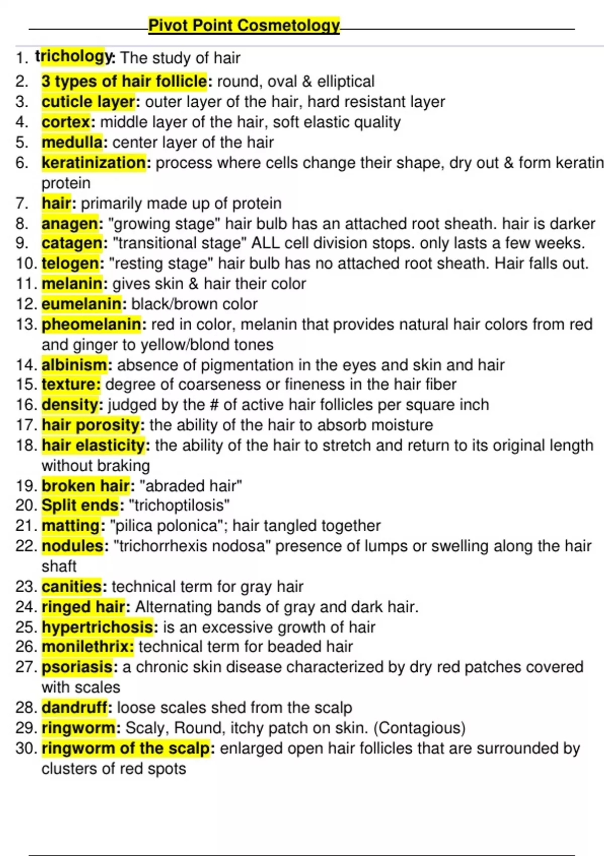 26. monilethrix: technical term for beaded hair