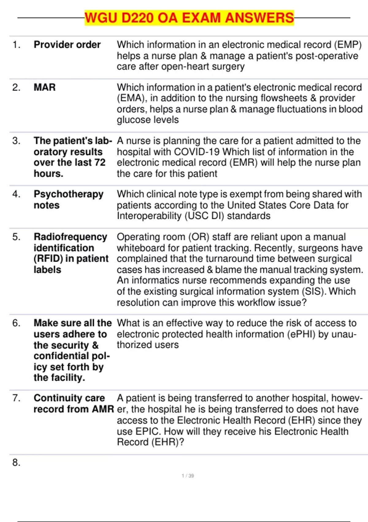 , WGU D220 OA EXAM ANSWERS
