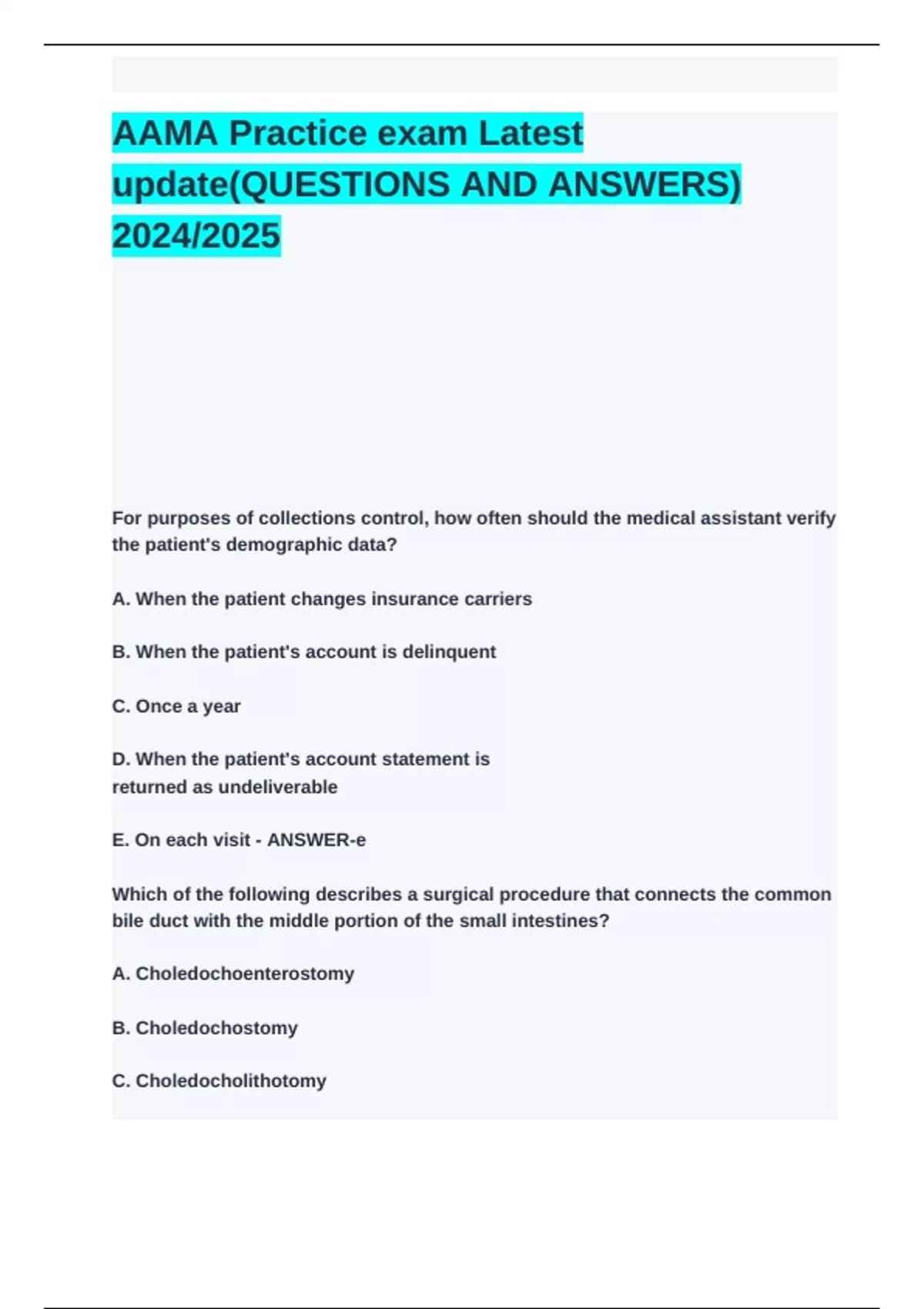 E. Choledochojejunostomy - ANSWER-e
