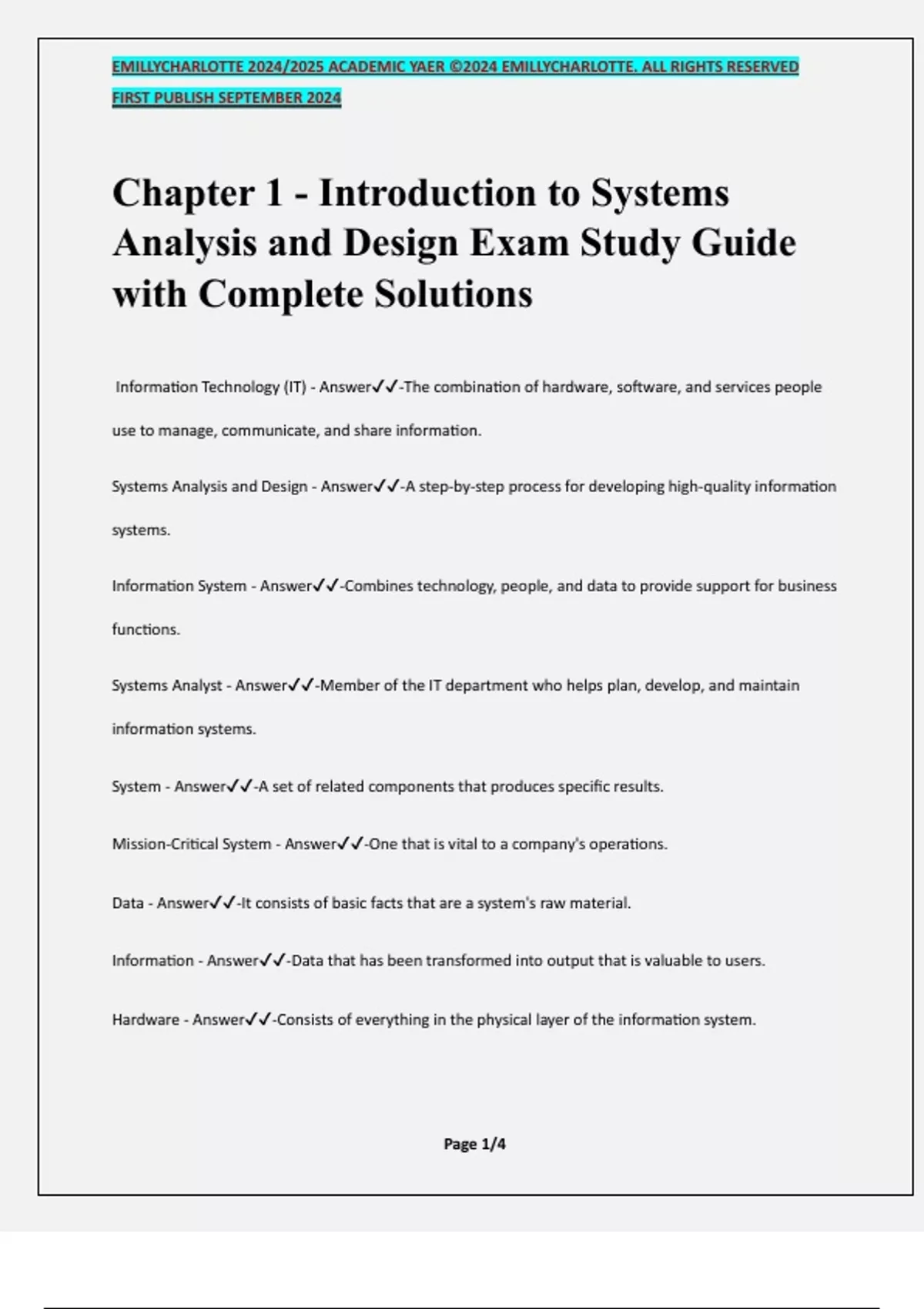 Systems Analyst - Answer✔✔-Member of the IT department who helps plan, develop, and maintain