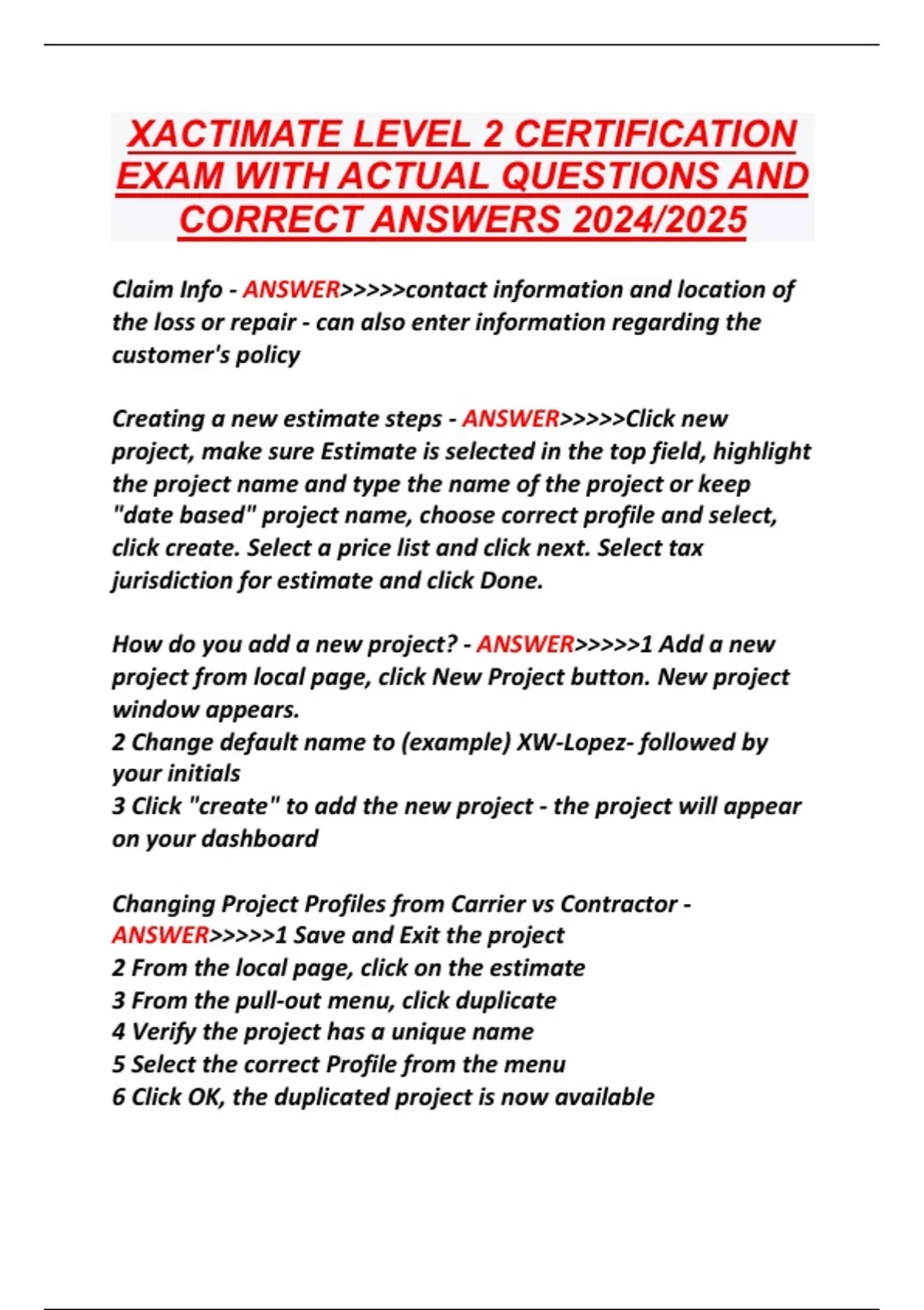 XACTIMATE LEVEL 2 CERTIFICATION EXAM WITH ACTUAL QUESTIONS AND CORRECT ANSWERS 2024/2025