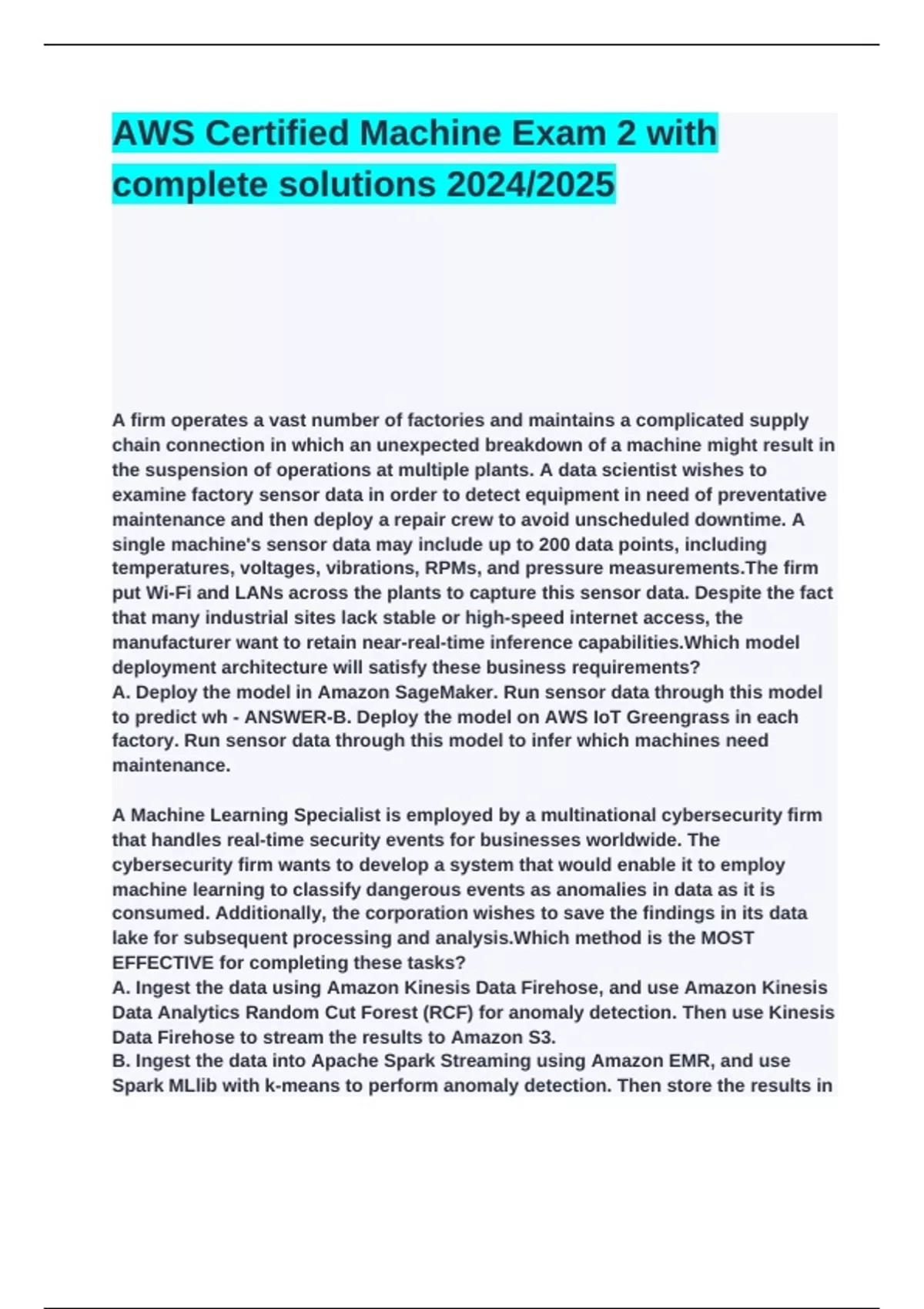 to predict wh - ANSWER-B. Deploy the model on AWS IoT Greengrass in each