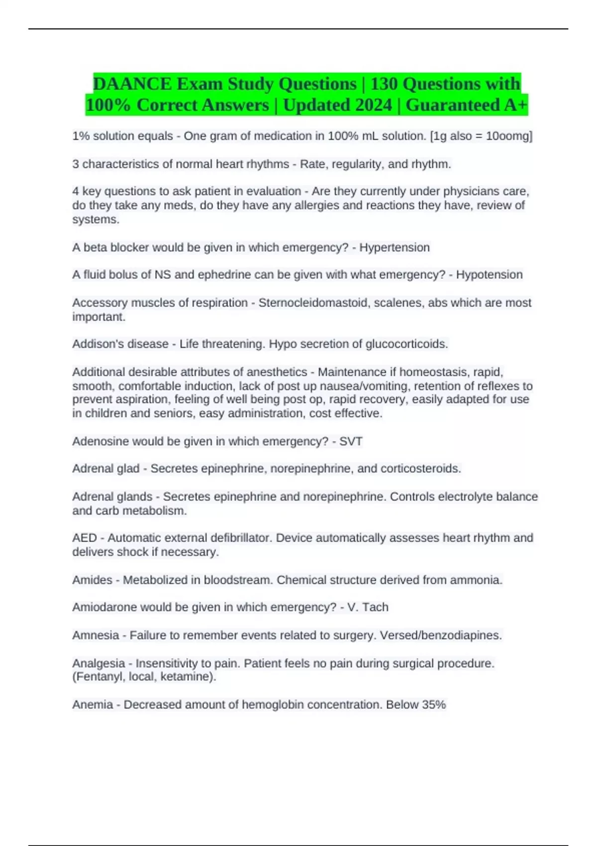 DAANCE Exam Study Questions | 130 Questions with 100% Correct Answers | Updated 2024 | Guaranteed A+