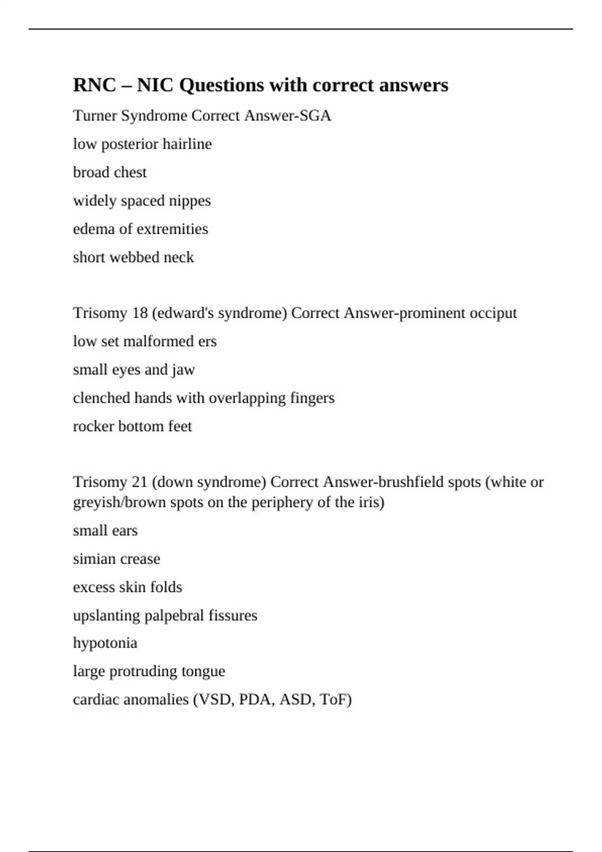 Trisomy 18 (edward's syndrome) Correct Answer-prominent occiput