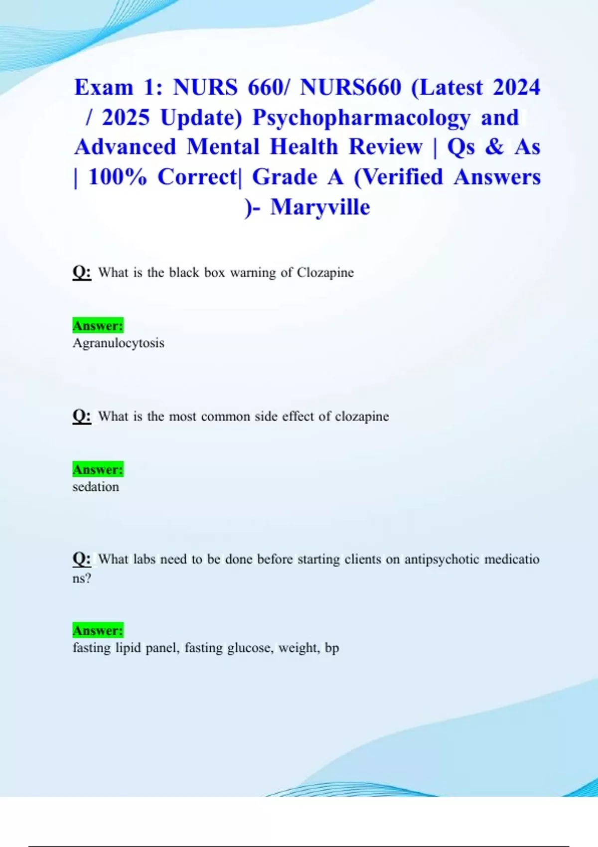 Q:IWhatIlabsIneedItoIbeIdoneIbeforeIstartingIclientsIonIantipsychoticImedicatio