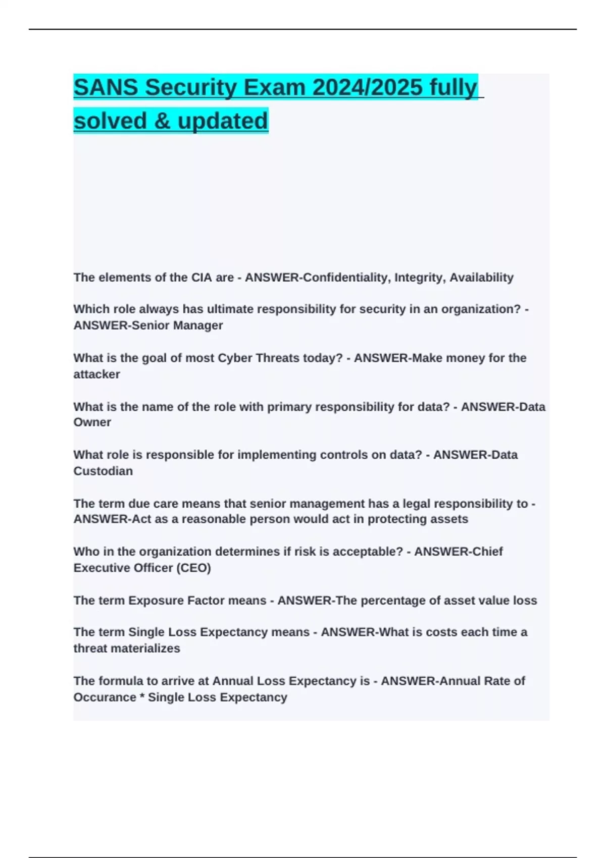 The term Single Loss Expectancy means - ANSWER-What is costs each time a