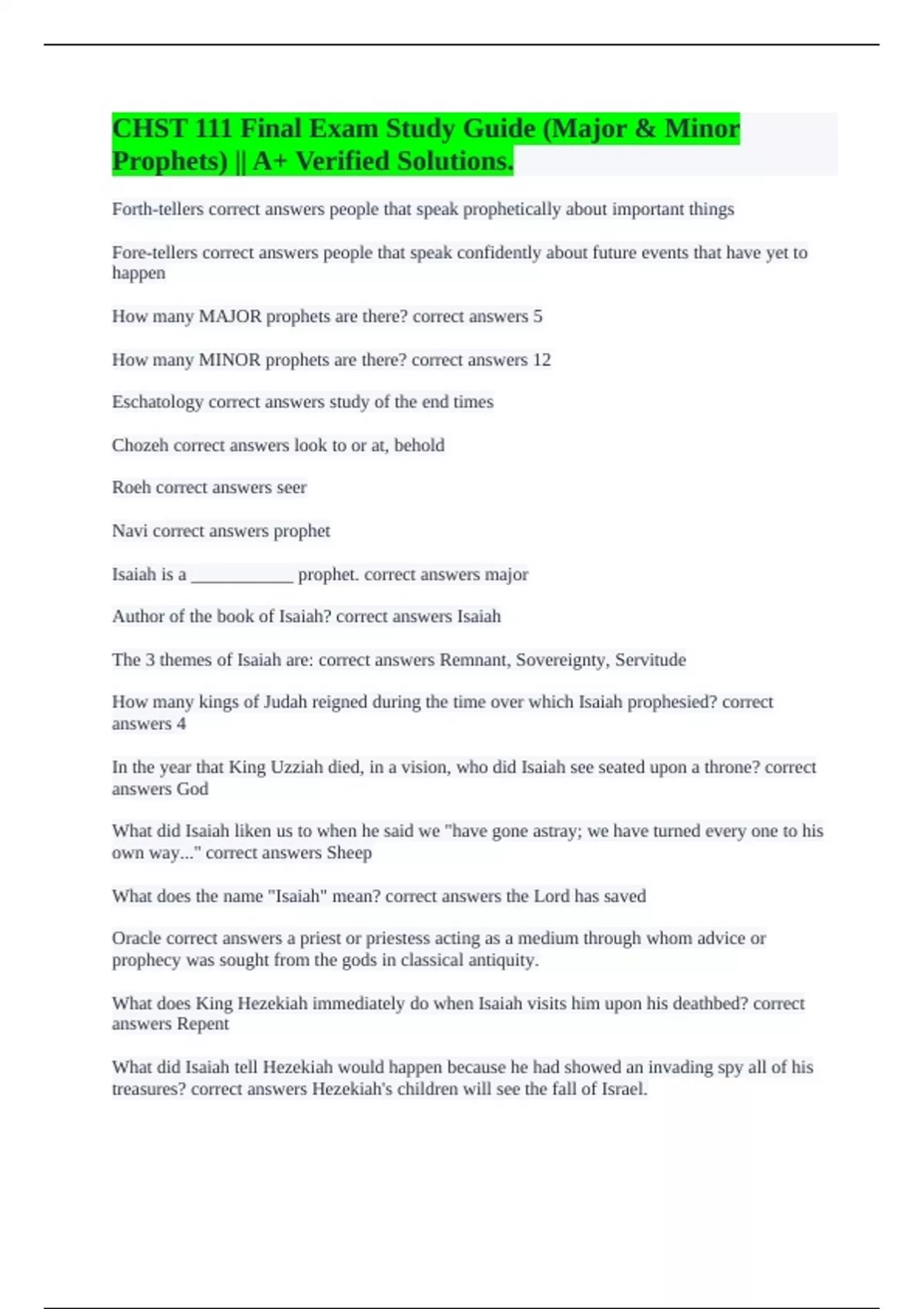 treasures? correct answers Hezekiah's children will see the fall of Israel.