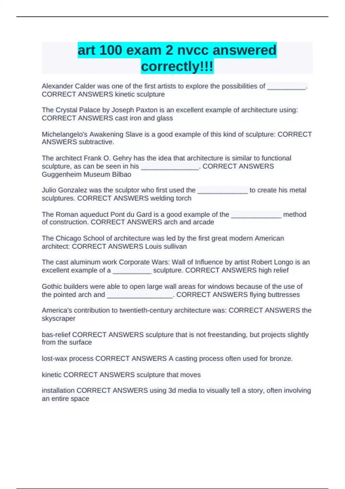 CORRECT ANSWERS kinetic sculpture