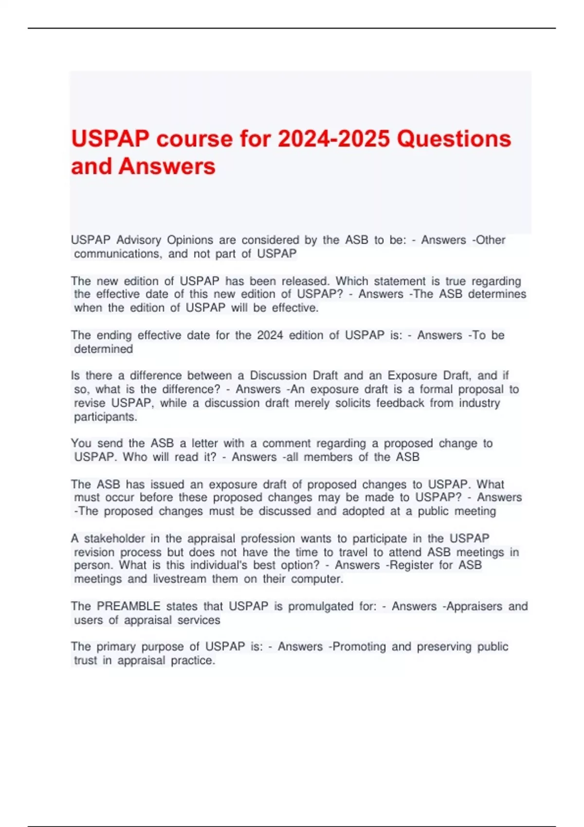 USPAP course for 2024-2025 Questions