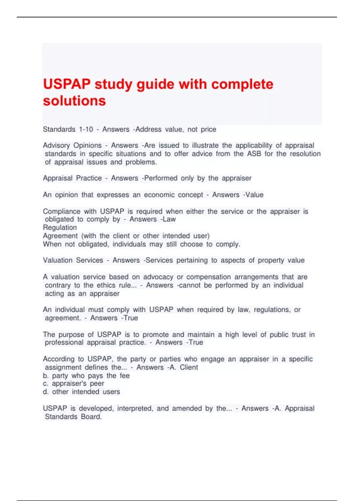 USPAP iiis iideveloped, iiinterpreted, iiand iiamended iiby iithe... ii- iiAnswers ii-A. iiAppraisal
