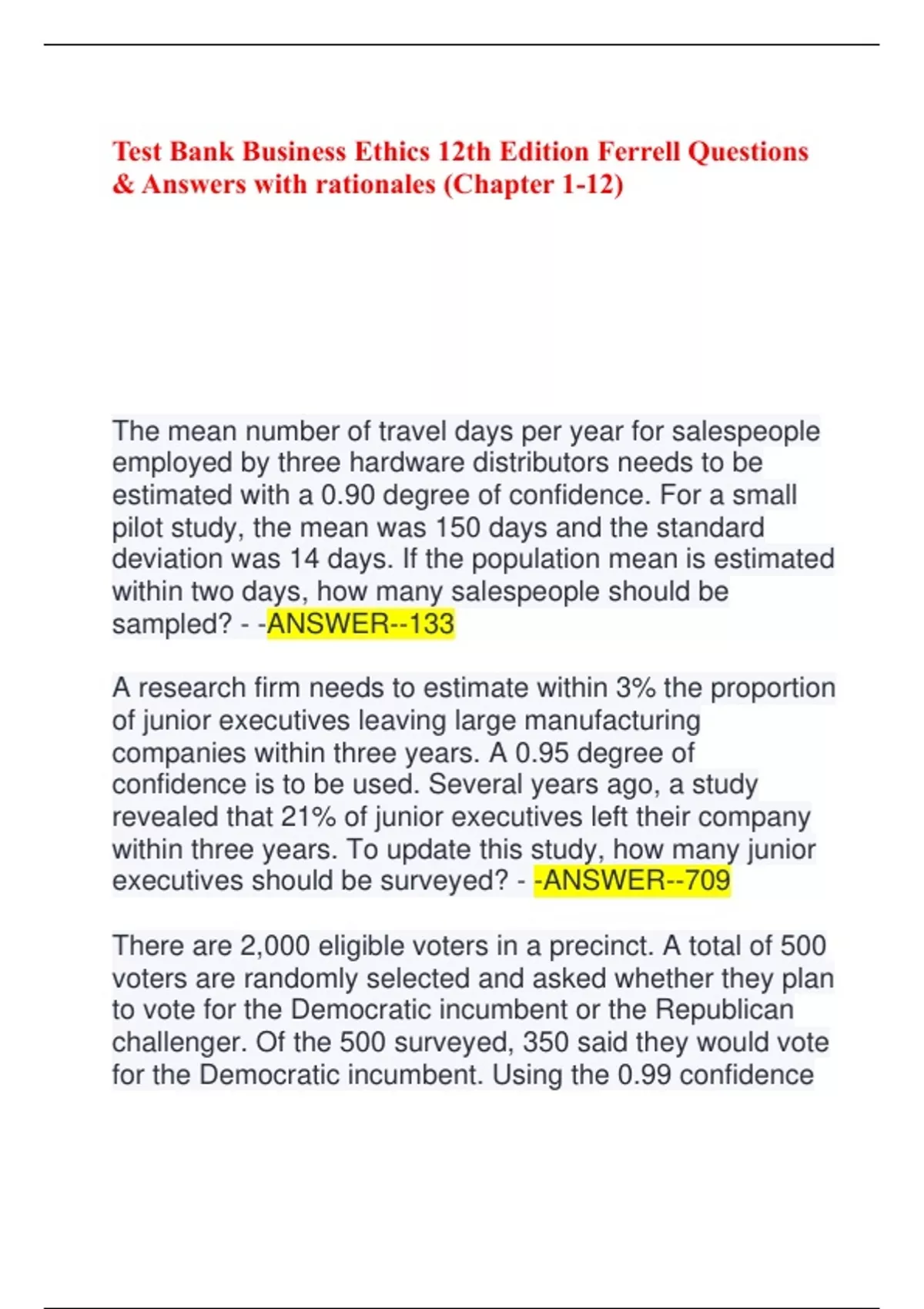 Test Bank Business Ethics 12th Edition Ferrell Questions & Answers with rationales (Chapter 1-12)