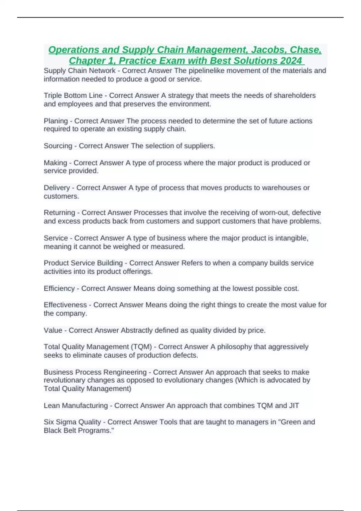 Total Quality Management (TQM) - Correct Answer A philosophy that aggressively